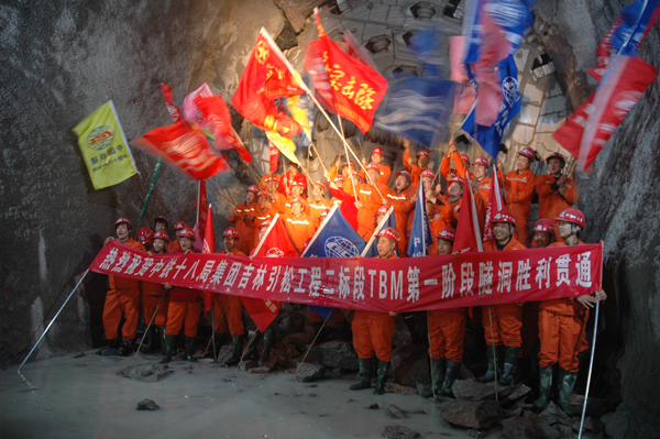 1月10日,随着全断面硬岩掘进机(TBM)的轰鸣声渐渐停歇,在施工人员的欢呼声中,吉林省重点水利工程——吉林省中部城市引松供水工程总干线施工二标TBM掘进首段引水隧洞贯通,比计划工期提前110天。