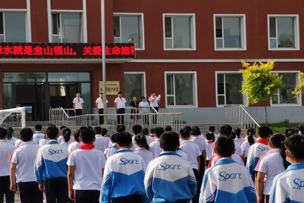 升旗仪式上,进行了主题为“我和母亲河”国旗下宣教活动,提高了学生对河长制湖长制的认识。