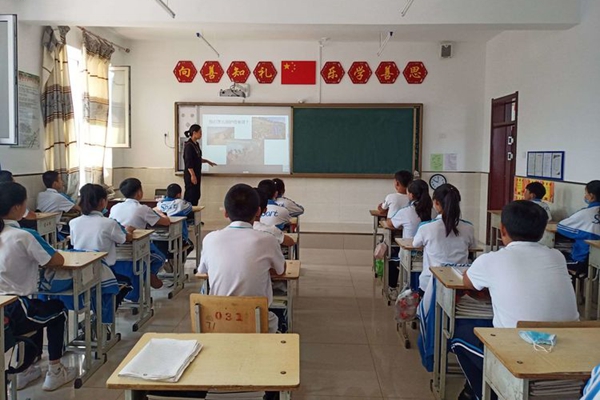 校园内的电子屏幕滚动播放着河湖保护的标语,潜移默化中起到环境育人的目的。