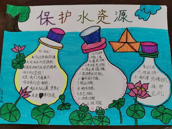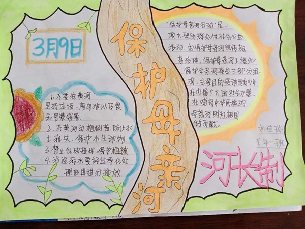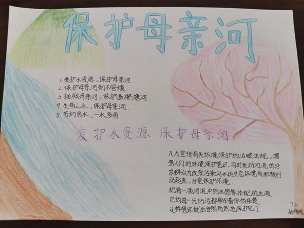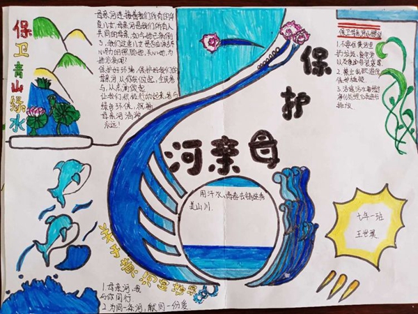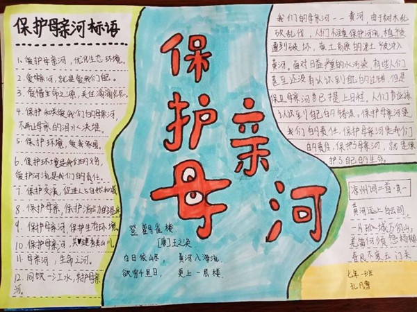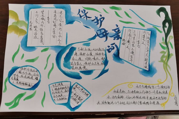 鼓励学生自主绘制班级板报活动,宣传河湖保护的意义,在学生搜集资料的过程中,认识了母亲河、了解了母亲河、保护了母亲河。