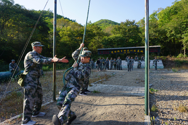 为凝聚团队、超越自己、提高党性,在教育拓展训练基地,全体学员开展了一系列团队合作竞技拓展训练,充分发挥团结协作精神,通过朗诵抗联诗歌、抗联战士技能分组对抗等活动亲身体会战争中对战士体能耐力及精神的考验。